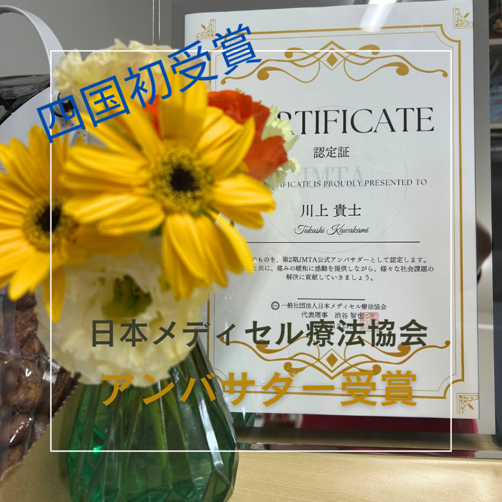 マッスル整体院長が、日本メディセル協会から、四国で初めてアンバサダー賞を
